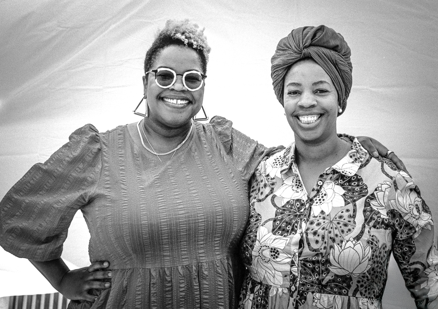 This is a street portrait of two women selling cosmetics at an outdoor market in Jack London Square. Nice smiles—and I didn’t ask them not to smile, as I often do. Taken with my 35mm film camera.